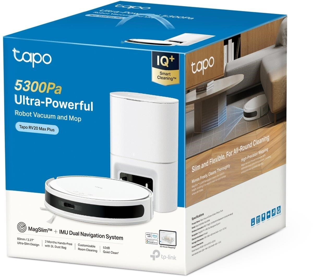 TP-Link Tapo RV20 Max Plus robotický vysavač s mopem a stanicí (LiDAR, 2,4 GHz, BT, bílý)