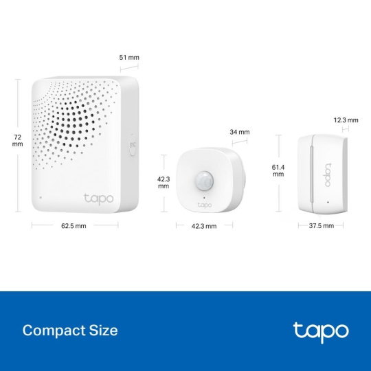 | Package Contents | Tapo H100 × 1  Tapo T100 × 1 Tapo T110 × 2 Button Battery CR2450 × 1 Button Battery CR2032 × 2 3M Adhesives × 7 Quick Start Guide  |