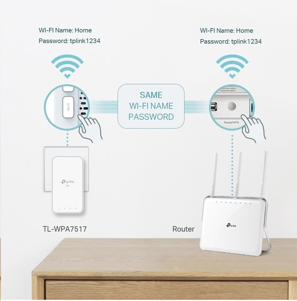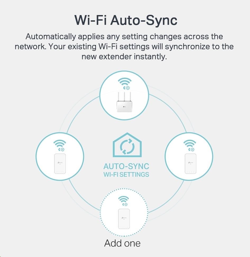 - Automatická synchronizace Wi-Fi – jednoduše zkopírujte nastavení Wi-Fi sítě routeru a použijte všechny změny v celé zabezpečené síti Powerline s funkcemi klonování a přesunu Wi-Fi.
