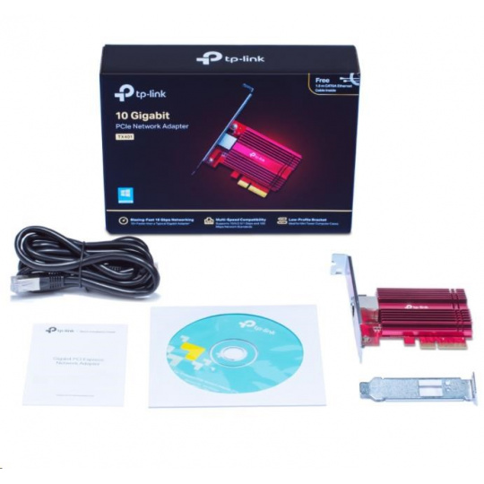 | Package Contents | 10 Gigabit PCIe Network Adapter (TX401) Standard/Low-Profile Brackets Quick Installation Guide Resource CD 1.5 m CAT6A Ethernet Cable |