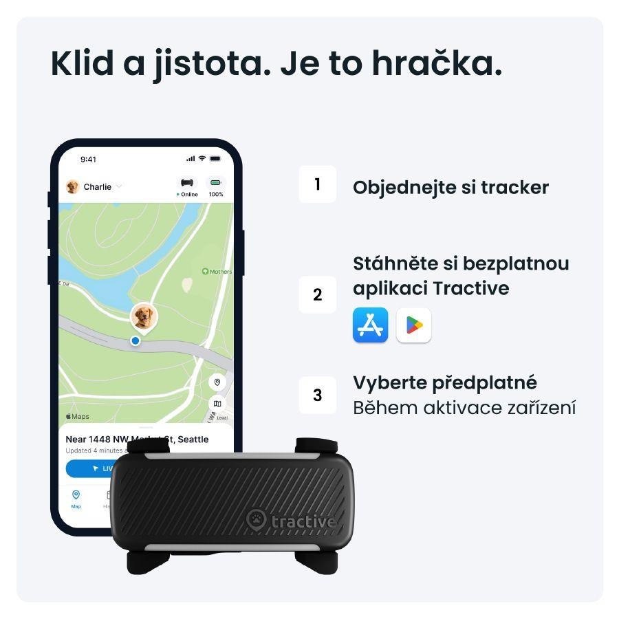 GPS tracker Tractive vás informuje, jak moc se váš pes pohybuje, spí a štěká. Můžete nastavit cíle pohybu, kontrolovat Skóre kondice a porovnávat svého psa s jinými plemeny.Odolná konstrukce