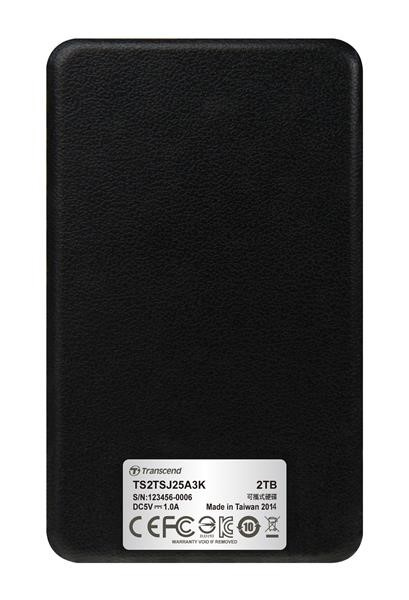 TRANSCEND externí HDD USB 3.1 StoreJet 25A3, 2TB, Black (nárazuvzdorný, 256-bit AES)
