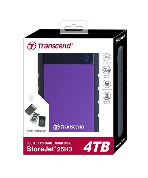 TRANSCEND externí HDD USB 3.1 StoreJet 25H3P, 4TB, Purple (nárazuvzdorný)