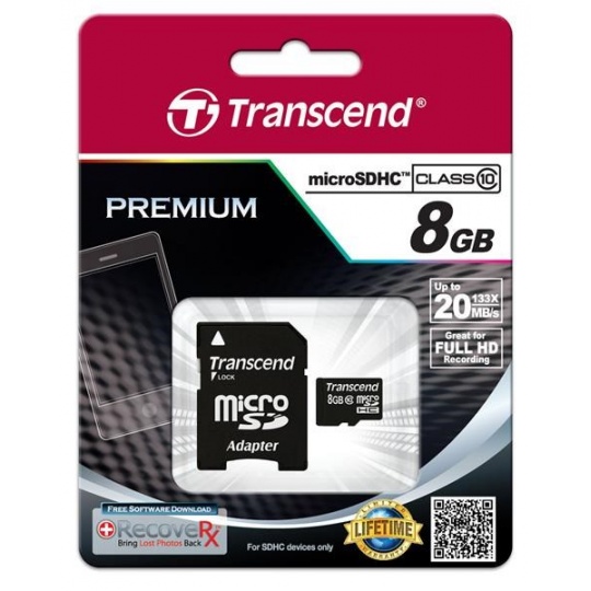 TRANSCEND MicroSDHC karta 8GB Class 10 + adaptér