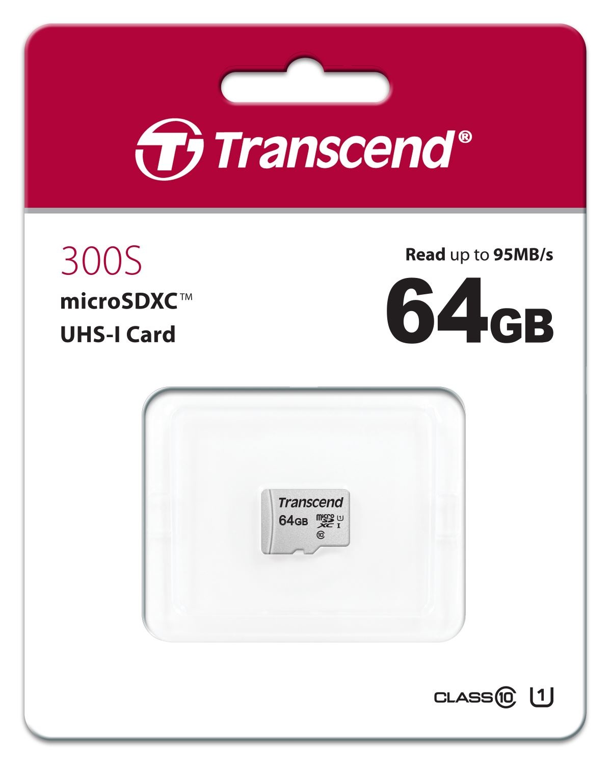 TRANSCEND MicroSDXC karta 64GB 300S, UHS-I U1, bez adaptéru