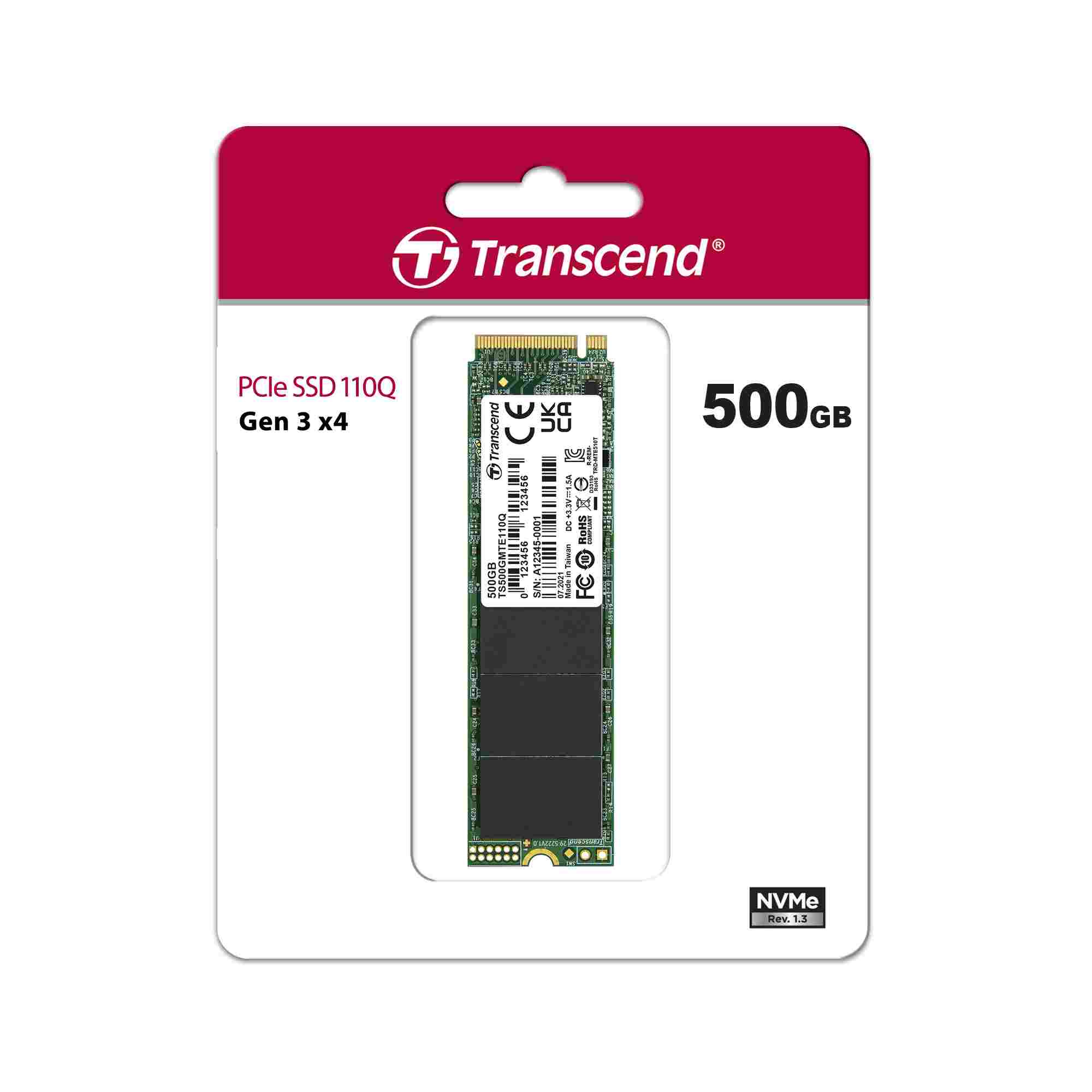 TRANSCEND SSD 110Q 500GB, M.2 2280, PCIe Gen3x4, NVMe, M-Key, QLC, DRAM-less