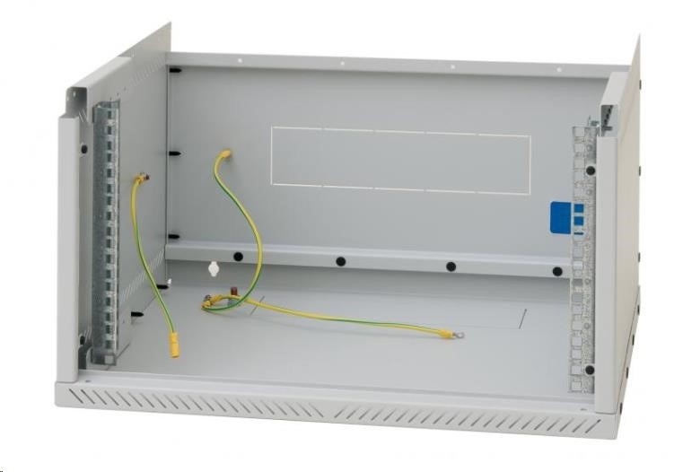 Nastavitelné vertikální lišty: Jeden pár 19“ vertikálních lišt je skokově nastavitelný v přední části rozvaděče. To usnadňuje montáž zařízení i organizaci propojovacích kabelů.