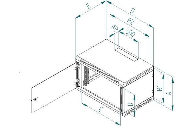 Rozvaděč Delta B je celosvařený nástěnný jednodílný rozvaděč s celoskleněnými dveřmi, které je možné díky masivním pantům otevřít pod úhlem téměř 180°.