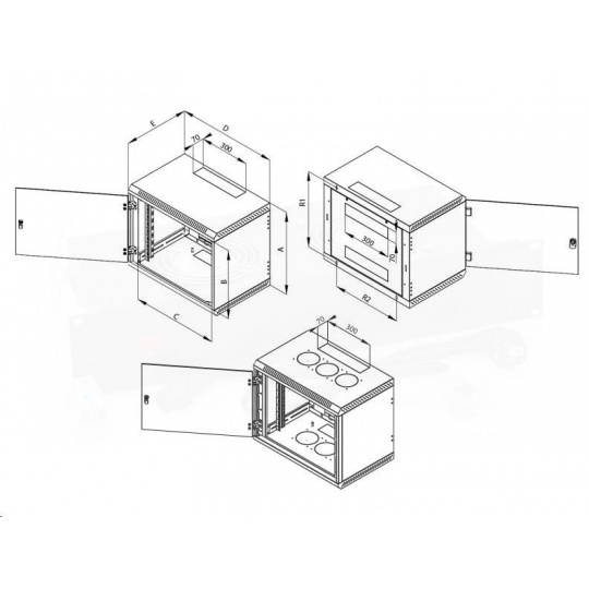 TRITON 19" jednodílný rozvaděč 18U/400mm, 6 otvorů pro ventilátory.