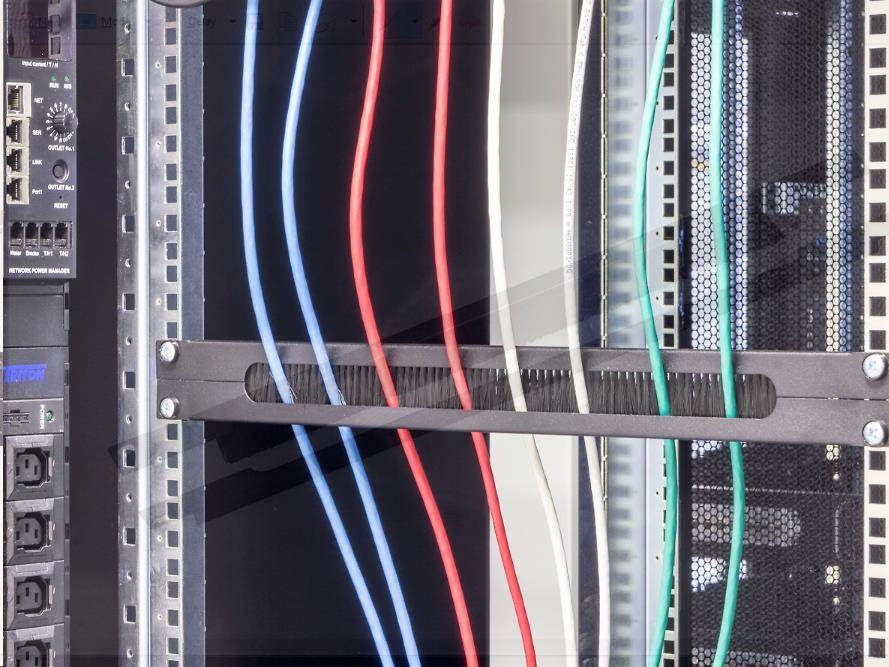 19" průchozí panel 1U rozdělený horizontálně, kartáč, otvor 350 x 21 mm.
