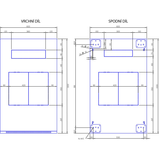 Svařovaný rozvaděč s odnímatelnými bočnicemi a zadním krytem, IP20, nosnost 800 kg