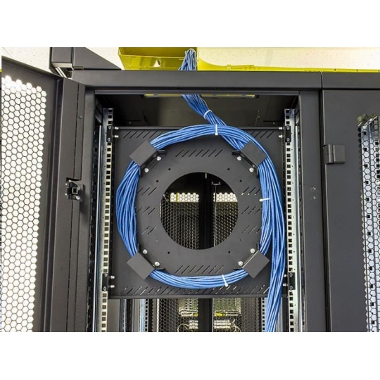 Držák rezervy kabelů slouží pro bezpečné uložení zejména instalačních metalických a optických kabelů uvnitř rozvaděče a jejich ochranu.