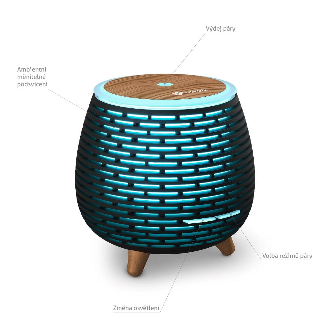 Stačí chvilka a difuzér TrueLife promění vzduch v místnosti, zvlhčí jej a případně naplní příjemnou vůní esenciálního oleje pomocí technologie OilFlow®. Zároveň však umí vytvořit jedinečnou atmosféru díky podsvícení, kde si máte možnost zvolit až ze 7 barevných variant.