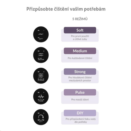 Díky funkci DIY si můžete nastavit intenzitu tlaku vody přesně podle vašich představ a vytvořit si tak vlastní čistící režim.