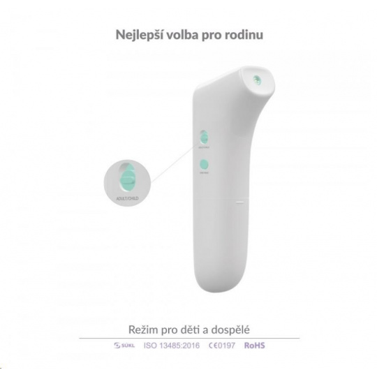 Teploměr nabízí dětský režim, který je uzpůsoben pro osoby mladší 12 let. Jeho zapnutí indikuje symbol miminka na displeji.