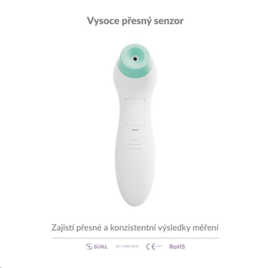Díky technologii infračerveného záření dokáže teploměr změřit teplotu velmi přesně, s maximální odchylkou 0,1 °C.