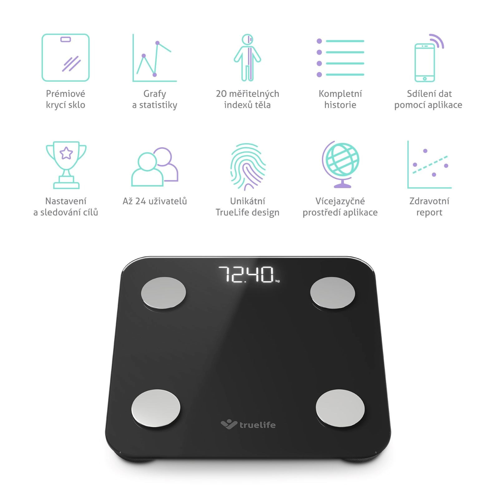 TrueLife FitScale W1 BT Black - bioelektrická impedanční bluetooth váha