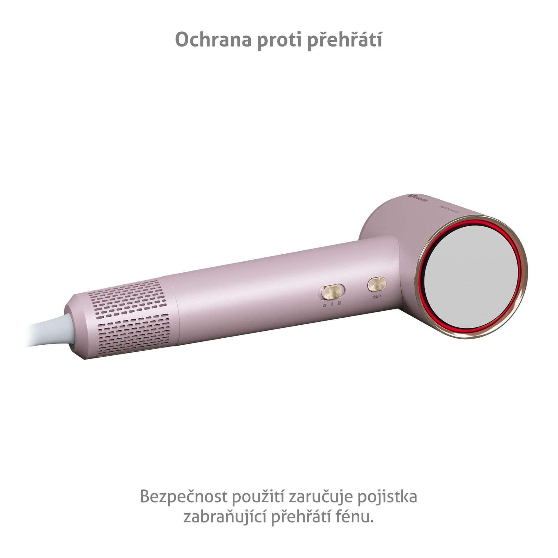 Pojistka proti přehřátí zaručuje bezpečné používání fénu.