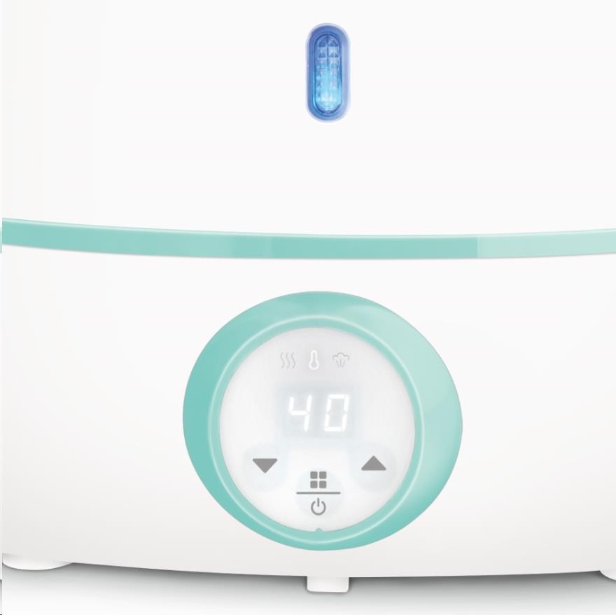 Kromě funkce rychlého ohřevu mléka a dětských příkrmů ohřívač disponuje i funkcí sterilizace. Nemusíte tedy pořizovat další přístroje, abyste udrželi lahvičky a dudlíky vašeho miminka v čistotě. Mód sterilizace zvolíte trojím stisknutím tlačítka na ovládacím panelu. Keep Warm funkce se stará o udržování konstantní teploty mléka v lahvičce, konkrétně 37 C. Výši teploty si dle potřeby můžete upravit pomocí tlačítek + a – na ovládacím panelu.