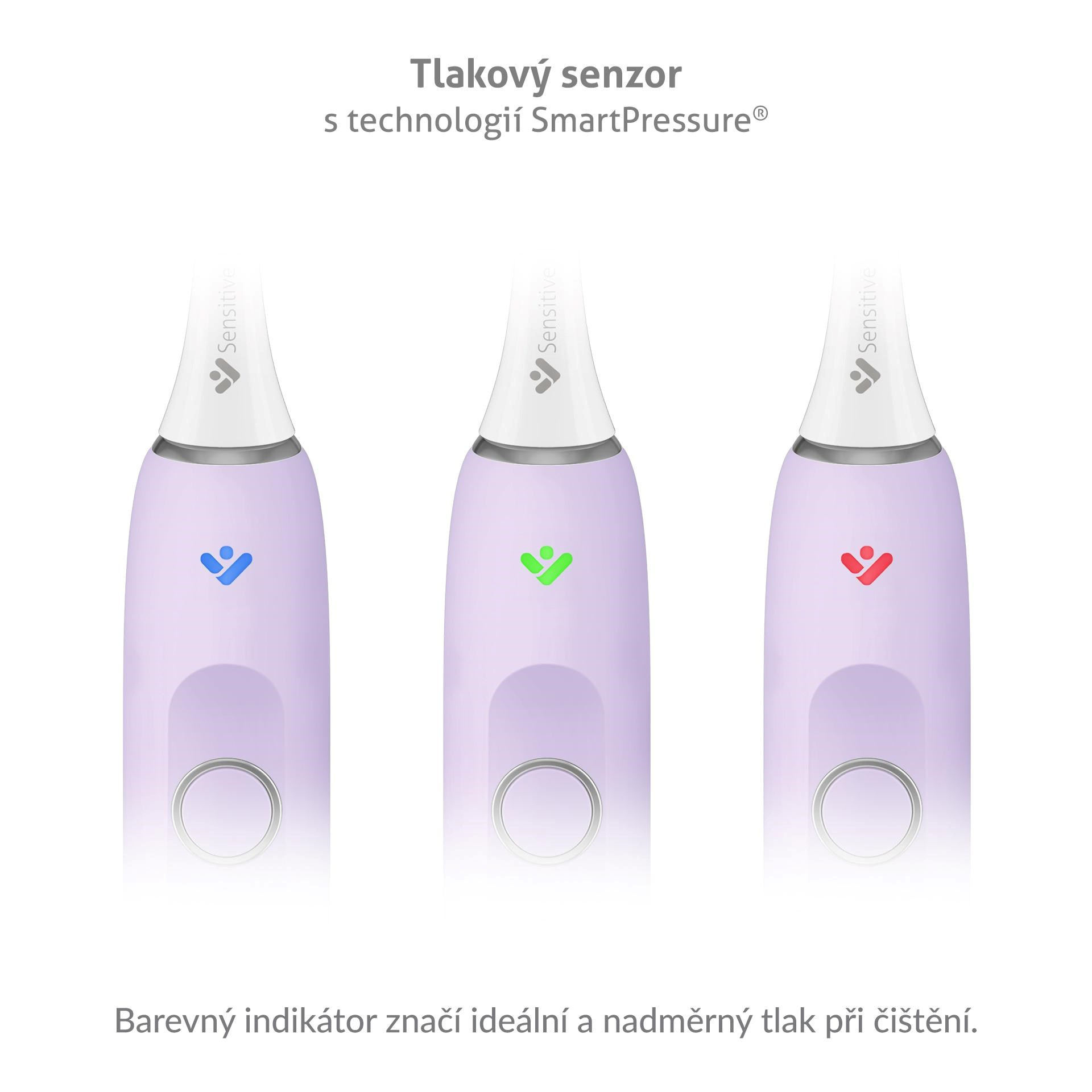 Aby přílišný tlak hlavice na zuby a dásně nezpůsobil zdravotní obtíže, je kartáček vybaven tlakovým senzorem, který míru tlaku rozezná a barevným indikátorem viditelným z přední i zadní strany upozorní, zda je třeba při čištění zvolnit.
