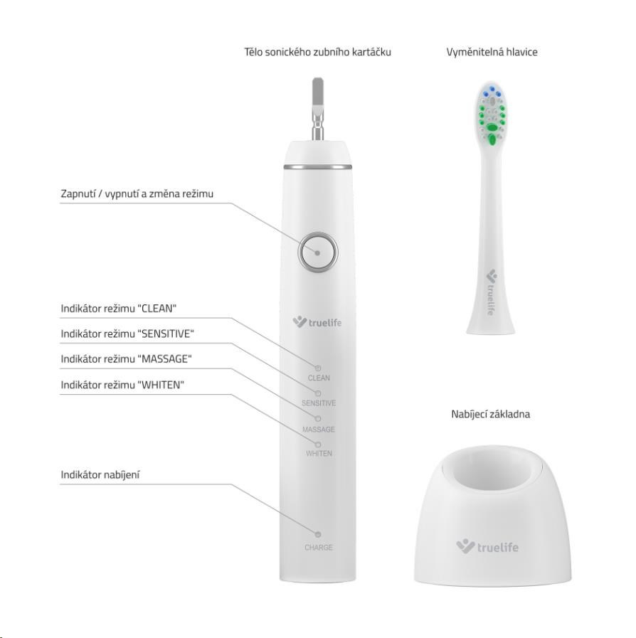 | Režimy | Clean, Sensitive, Massage, Whiten |