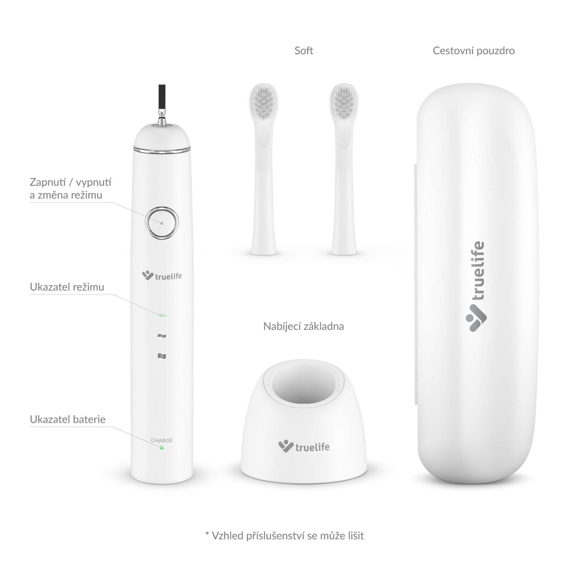 Většina dětí si čištění zubů příliš neužívá, a tak ho často jen tak odbyde. Se sonickým kartáčkem Truelife SonicBrush Junior J100, který je přizpůsoben potřebám dětí od 7 do 14 let, může být ale čištění zubů i zábava. Díky barevným polepům a zábavné výukové video animaci snadno proměníte rutinní činnost v legraci a vaše dítě se bude na čištění zubů těšit. Kartáček je plně přizpůsoben dětským potřebám, tělo i hlavice kartáčku mají vhodnou velikost pro dětská ústa a štětiny kartáčku jsou pro děti dostatečně jemné. Zároveň disponuje sonickou technologií SonicTrue®, díky které zvládne až 56 000 čistících pohybů za minutu a efektivně tak odstraní až 99 % zubního plaku. Kartáček je dobíjecí a baterie má výdrž až 35 dnů, takže s ním můžete pohodlně cestovat nebo ho přibalit dítěti s sebou na prázdniny. Součástí balení je cestovní pouzdro a dvě hlavice Soft.