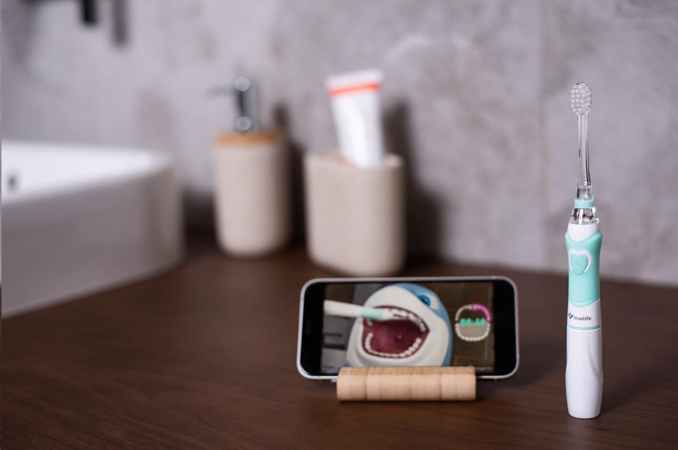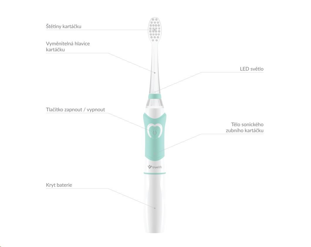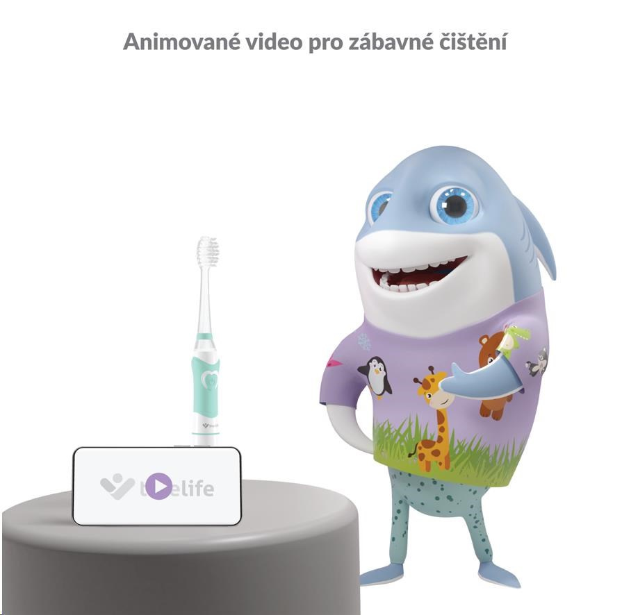 S kartáčkem TrueLife SonicBrush Kid G se jinak nudné čištění zubů může změnit na zábavnou aktivitu, na kterou se budou děti těšit. Výuková video animace, kterou si děti mohou pustit na mobilním telefonu nebo tabletu, provede celým čištěním. Děti vidí, jak si zuby čistit správně a dostatečně dlouho. Na konci čištění jsou děti odměny a natěšení na další čištění. Součástí balení jsou i nálepky se zvířátky. Děti si tak mohou kartáček ozdobit dle svých představ.