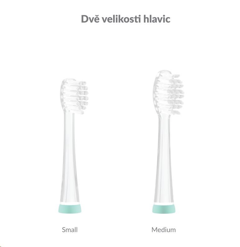 Součástí balení jsou 2 hlavice Small a 1 hlavice Medium, kartáček tak může používat více dětí. Jiné typy hlavic lze dokoupit.
