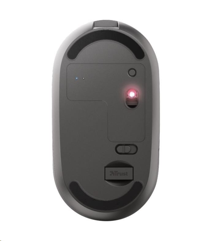 Rechargeable wireless mouse with minimalistic, rounded shape and silent buttons