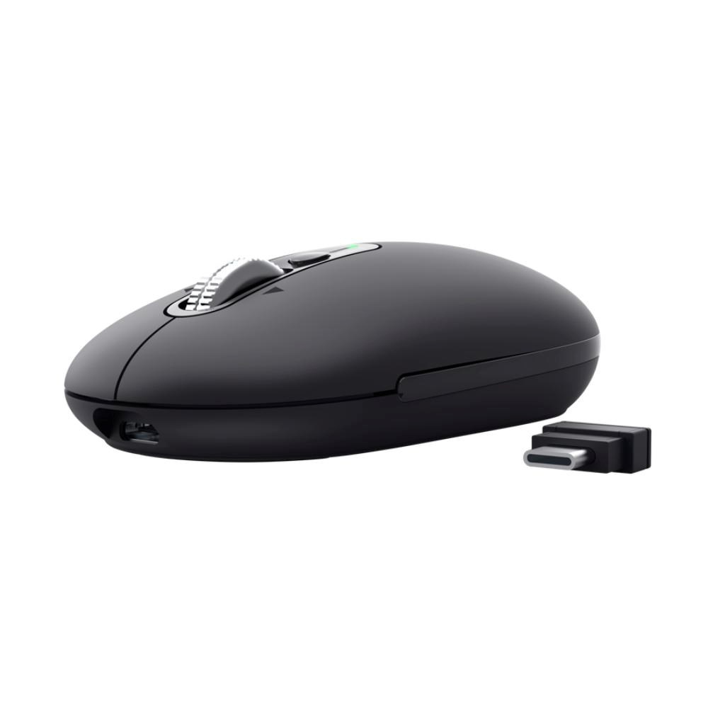 Trust Seron Hyperscroll Slim je štíhlá bezdrátová myš, která přináší plynulé rolování i všestranné připojení pro každodenní práci i multitasking. Díky prémiovému kolečku hyperscroll zvládneš rychle a přesně navigovat jak dlouhé dokumenty, tak webové stránky, zatímco multi-wireless technologie umožňuje bezproblémově přepínat mezi dvěma Bluetooth zařízeními, 2,4 GHz USB-C přijímačem nebo USB-A adaptérem, který je součástí balení.