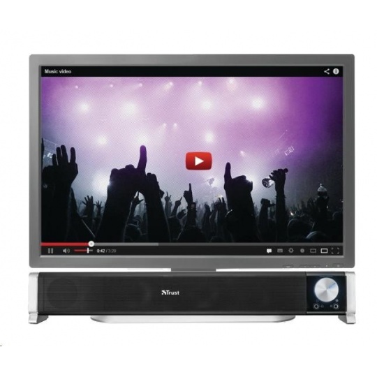 - Bohatý stereo zvuk z kompaktního reproduktoru, který lze umístit pod jakýkoliv počítačový monitor.