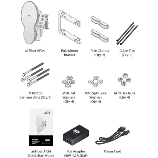 Ubiquiti airFiber AF24 je určený pro páteřní spoje, pracuje v nelicencované pásmo 24 GHz s reálnou propustností až 1,4 Gbps! Jednotka je vybavena dvěma parabolickými anténami z nichž jedna slouží pro příjem a druhá pro vysílání dat, technologie MIMO. Na výběr je několik režimů činnosti: FDD (Frequency Division Duplex) a HDD (Hybrid Division Duplex), díky kterým airFiber dosahuje vysoké rychlosti a spektrální účinnost. HDD systém nabízí nízké latence FDD systémů a spektrální účinnost TDD systémů. Podporován je Full Duplex i Half Duplex režim, transparentní L2 bridge a AES-128 bitové kryptování.