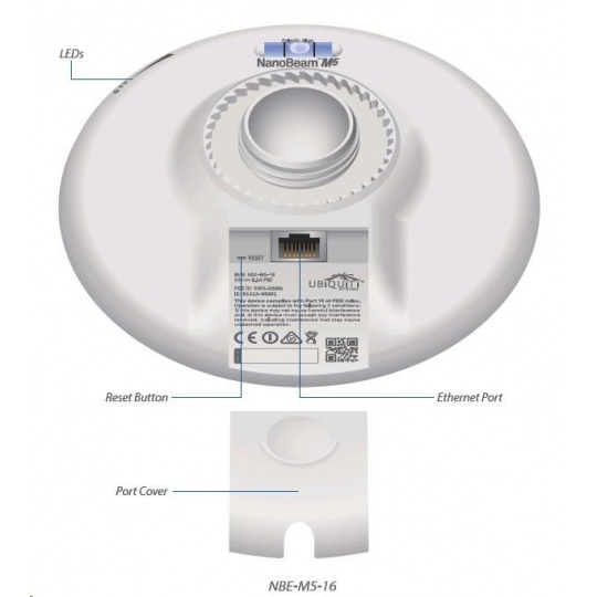 NanoBeam M5 2x16dBi je nová kompaktní jednotka s elegantním designem a vyskovým výkonem. Uvnitř se nachází MIPS procesor Atheros 74KC s frekvencí 560MHz, kterému sekunduje 64MB operační paměti typu DDR2 a 8MB Flash paměť. Síťový port podporuje 10/100 Ethernet a lze po něm jednotku napájet pasivním PoE 24V/0,5A (aktivní PoE dle 802.3af není podporováno). Podorovány jsou standardy 802.11n a nechybí ani zpětná kompatibilita s 802.11a. Díky AirMAX (protokol TDMA) technologii je možné připojení k AP s nízkými latencemi a velkou propustností bezdrátového spoje. Teoretická maximální propustnost jednotky je 300Mbit (MCS15, 802.11n, 2x2MIMO, při šířce kanálu 40MHz).