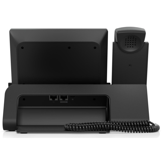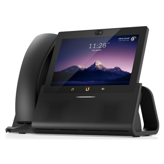 Popis produktu Ubiquiti Phone Touch Max je novou generací VOIP stolních telefonů. Telefon je ovládán pomocí 7" displeje s rozlišením 1280 x 800 HD, který podporuje technologii Multi-touch. Pro připojení jsou k dispozici 2 gigabitové LAN porty. Na boku telefonu je tlačítko pro rychlé vypnutí mikrofonu. Telefon lze napájet pomocí PoE+ nebo USB-C s maximální spotřebou 5 W. Klíčové vlastnosti 7" dotykový displej 5MP videokamera Tlačítko pro vypnutí mikrofonu Napájení pomocí USB-C a PoE+.