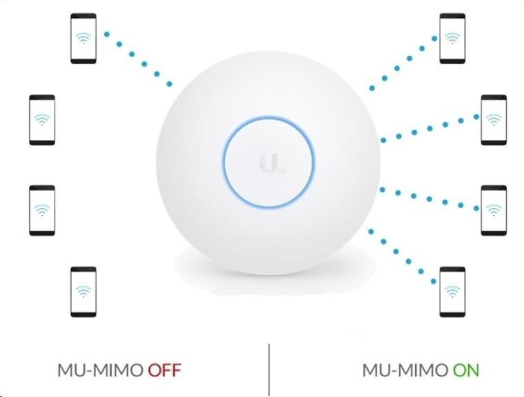 Výhody MU-MIMO technologieDíky MU-MIMO (Multiple User - Multiple In - Multiple Out) technologii je UAP-AC-HD schopno komunikovat s několika zařízeními ve stejný čas: