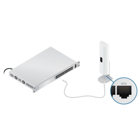 Ubiquiti U-LTE-Pro můžete umístit kamkoliv na místo, kde je nejlepší signál, protože jej lze napájet 802.3at PoE+ z přepínače např. jako je UniFI PoE Switch. Můžete jej připevnit na zeď pomocí montážního držáku nebo máte možnost lepení a upevnění na plochu. Zařízení má sekundární port, který nabízí přemostění a pasivní průchod PoE (užitečné pro kameru, přístupový bod nebo jiné zařízení).