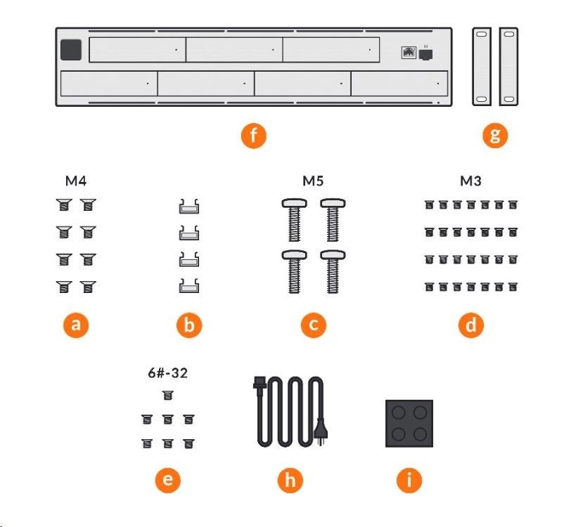 - Šroubky na přichycení do racku