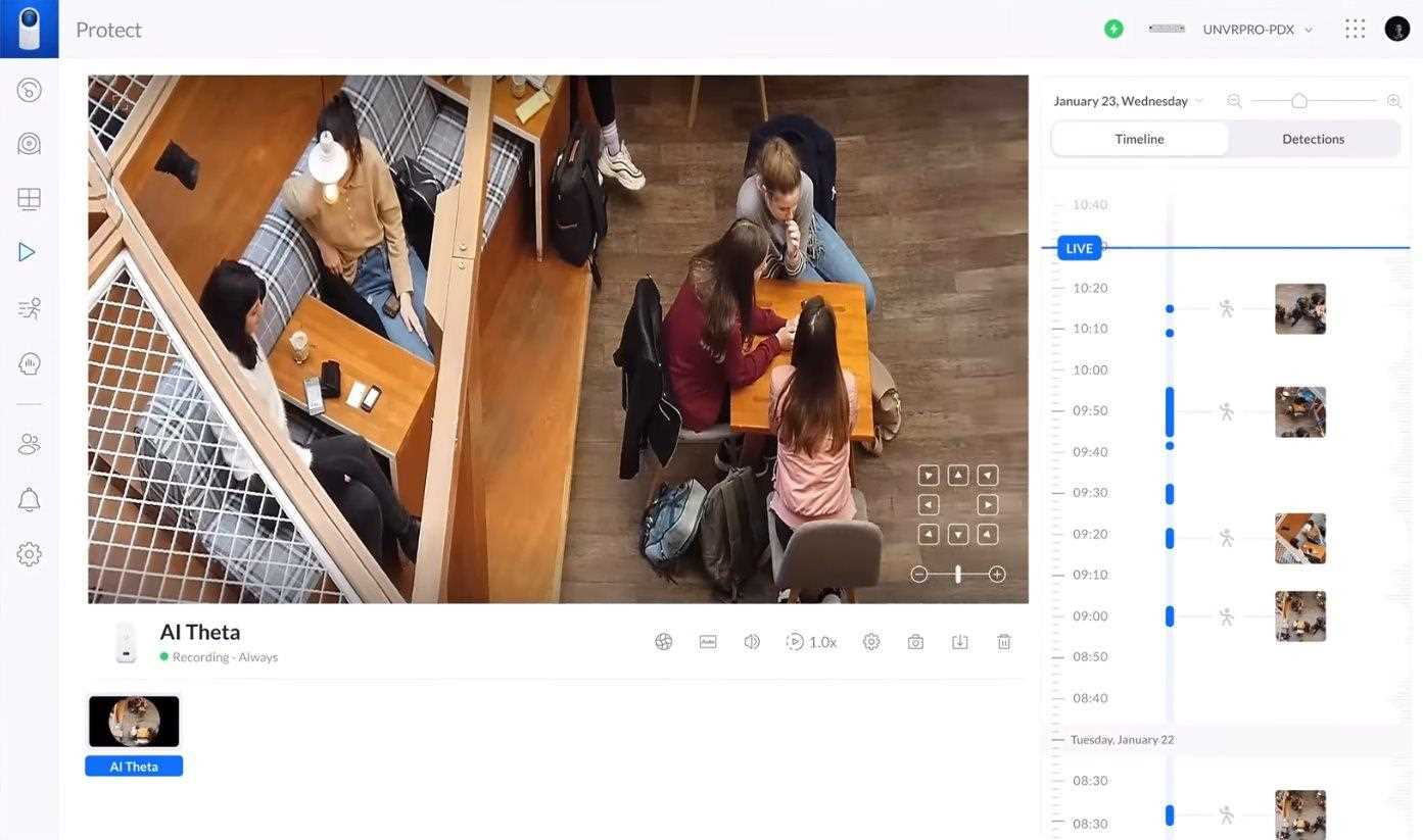 Popis produktu UniFi Protect UVC AI Theta je speciální kamerová jednotka (hub) s ethernetovým portem, informačním displejem a dvěmi USB-C porty pro připojení kamery na vzdálenost až 30m (v balení naleznete 1m propojovací kabel) a audio mikrofonu/reproduktoru, který není součástí balení. V balení se nachází 2 kamery s rozdílnými vlastnostmi a je možné zapojit pouze jednu z nich. Panoramatická kamera má 12MP senzor, rozlišení 2560 x 2560px při 20 fps a fixní objektiv s pozorovacím úhlem 180° Širokoúhlá kamera je směrová, má 8MP senzor, max. rozlišení 3264 x 2448px při 24 fps a fixní objektiv s pozorovacím úhlem 98° Do sítě se hub připojuje pomocí 10/100/1000 Mbps ethernetového portu, který podporuje napájení přes PoE 37 - 57V DC s maximální spotřebou 12,5W. Hub je určen pouze pro vnitřní použití, podporuje H.264 a MJPEG kompresi a díky výkonému CPU podporuje inteligentní AI detekci pohybu, osob, aut a poznávacích značek. Důležité vlastnosti 8MP, širokoúhlý pozorovací úhel 98°, max. 24 fps 12MP, panoramatický pozorovací úhel 180°, max. 20 fps Možnost dokoupení audio modulu s mikrofonem a reproduktorem Napájení pomocí PoE, max. spotřeba 12.5W Barevný LCM displej pro sledování stavu zařízení Pokročilý procesor AI pro inteligentní detekce na dlouhé vzdálenosti Spravováno softwarem UniFi Protect - od verze 2.7.18 (web) nebo 1.11.0 (mobilní aplikace) Poznámka: Ke spuštění tohoto produktu s plnou funkčností je nutný UniFI Protect, doporučujeme jej používat s UniFi Dream Machine Pro nebo UniFi Protect Network Video Recorder. Obsah balení Zařízení - hub Širokoúhlá kamera Panoramatická kamera USB-C propojovací kabel Šroubky + hmoždinky Plastový instalační kit pro přichycení kamery do stropu Plastový instalační kit pro přichycení hubu na zeď Technické parametry Kamera Typ objektivu:Fixní Pozorovací úhel [°]:98 Režim den/noc:Elektronický Obraz Rozlišení:8MP Max. rozlišení [pixely]:3264 x 2448 Konektory a rozhraní Počet portů USB-C:2 Rychlost LAN:(1) 10/100/1000Mbps Napájení Napájení přes PoE:37 .. 57V DC Typ napájení:PoE Max. spotřeba energie [W]:12,5 Fyzické charakteristiky Použití:Vnitřní Provozní teplota [°C]:-20 až 40 Šířka [mm]:23 Výška [mm]:23 Hloubka [mm]:44 Barva:Bílá Kompresní standardy Video komprese:H.264, MJPEG Obecné Kamerová řada:UniFi Protect Software Výchozí IP adresa:Dynamická z DHCP.