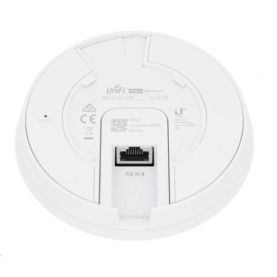 UniFi Protect G4 Dome kamera disponuje 4MP snímačem (2688 x 1512px) při 24fps, fixním objektivem (cca 4mm), IR přísvitem pro noční vidění, mikrofonem a reproduktorem. Kamera má velmi robustní tělo z kovového materiálu, odolnost IK08 proti vandalům a IPx4 proti povětrnostním vlivům. Do sítě se připojuje pomocí Gigabitového ethernetového portu, který podporuje napájení přes kabel - 802.3af PoE.