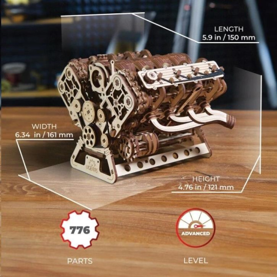 Ugears 3D dřevěné mechanické puzzle Motor V8
