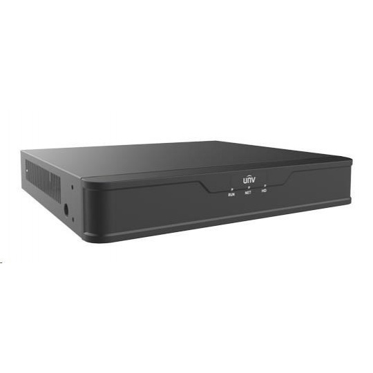 Uniview NVR, 4 kanály, H.265, 1x HDD, 8Mpix (64Mbps/64Mbps), HDMI, VGA, 4K, ONVIF, 2x USB, audio