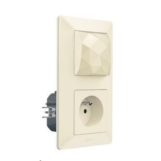 Valena Life with Netatmo startovací kit - nutný pro každou instalaci, obsahuje spínanou zásuvku 230V/16A s měřením spotřeby el. energie (lze ji ovládat bezdrátovými spínači osvětlení, mobilem nebo hlasem, přístroj lze přidat do scénářů nebo časových programů), komunikační bránu a ovládač scénářů "doma/mimo domov", instaluje se pouze do jediné instalační krabice místo klasické zásuvky - barva Béžová, dodáván s rámečkem v barvě Béžová