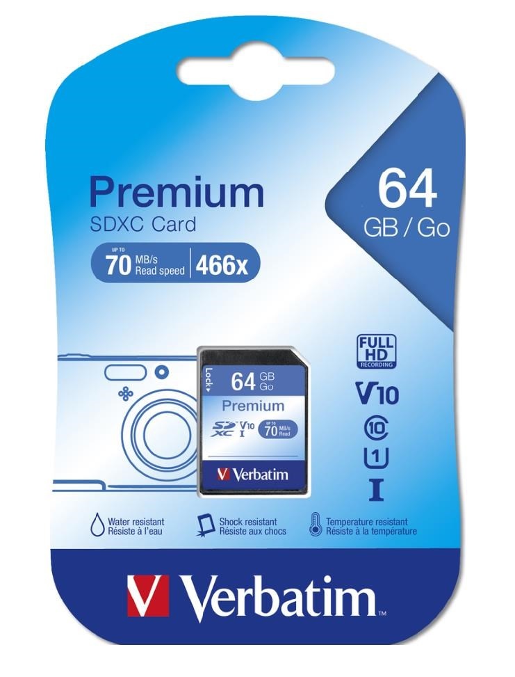 Verbatim Premium SD cards are perfect for compact to midrange point and shoot cameras and camcorders.