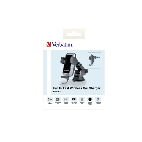Rychlonabíjecí držáky telefonu Verbatim využívají vysokorychlostní dobíjecí technologii Qi poskytující bezpečné a rychlé dobíjení vašeho telefonu s operačním systémem Android či iPhone Vysoce kvalitní dobíjecí držák umožňuje hands-free telefonáty a snadné prohlížení GPS map a zároveň rychle nabije váš chytrý telefon s technologií Qi.