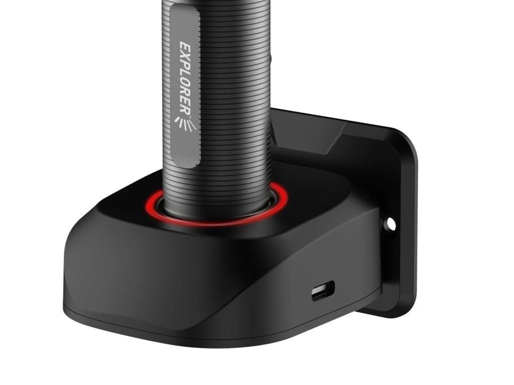 Výhodou této baterky je, že pro její nabíjení nepotřebujete klasické baterie, stačí pouze použít nabíjecí dokovací stanici s USB-C vstupem (dokovací stanice je součástí balení).
