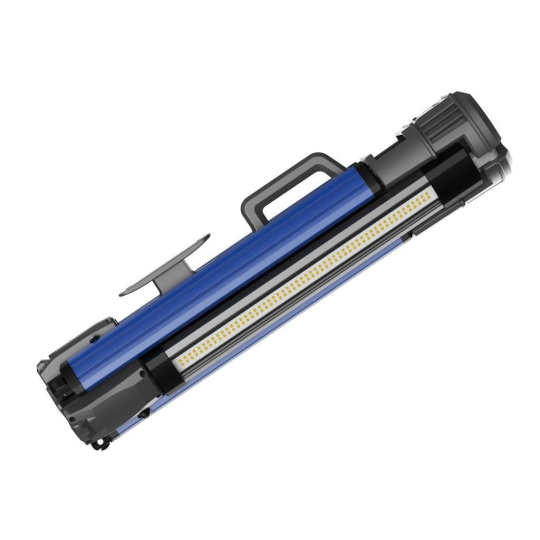 - Flexibilní použití: Světlo lze použít i ve složeném stavu – stačí otočit jednotlivá světla směrem ven a vysunout nožičky pro stabilní postavení.