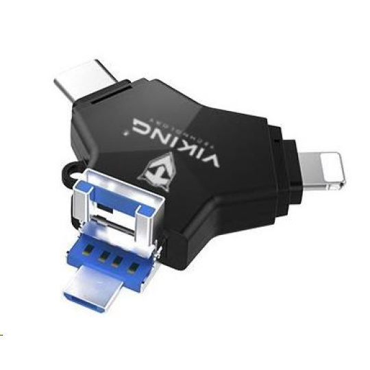 Viking USB Flash disk 3.0 4v1 s koncovkou Lightning/Micro USB/USB/USB-C, 32 GB, černá