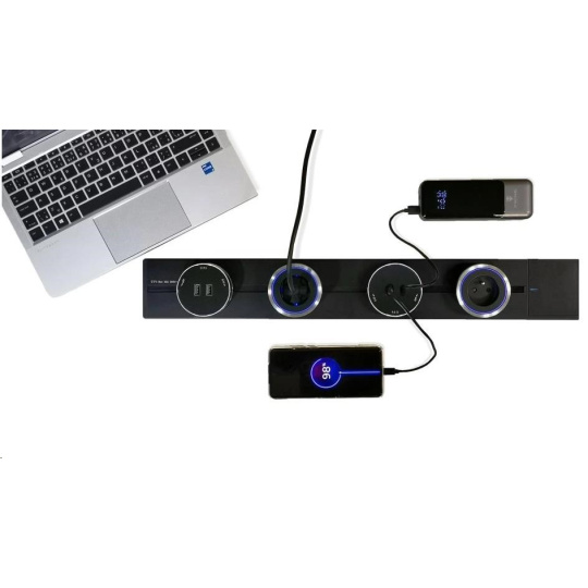 - Bezpečný a robustní design: Zásuvková lišta je vyrobena z odolné hliníkové slitiny, která zajišťuje dlouhou životnost a ochranu proti přehřátí. Těsnicí pásek chrání proti prachu a náhodnému dotyku, což snižuje možnost úrazu elektrickým proudem.