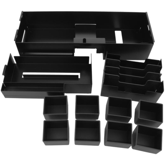 - Vyjímatelný kovový zásobník na bankovky s plastovými oddělovači přihrádek
