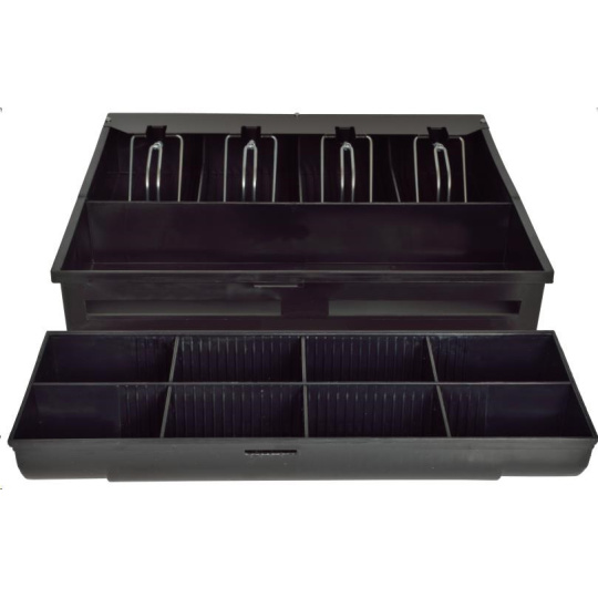 | Přihrádky | 4 x pro bankovky (nastavitelné) 8 x pro mince (nastavitelné) |